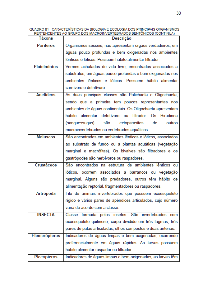 Dessa forma o uso de macroinvertebrados bentônicos tem sido cada vez mais aceito como ferramenta para a avaliação da qualidade da água, mesmo havendo incipiência no conhecimento taxonômico da fauna brasileira. Esse fato tem dificultado a aplicação desta técnica por parte dos órgãos ambientais (FAIAS JUNIOR, 2018).