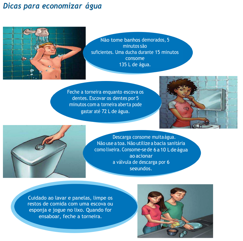 Algumas sugestões poderão fazer a diferença na hora de economizar água. São medidas que podem ser adotadas imediatamente e não necessitam de nenhuma adaptação em encanamento ou torneiras.