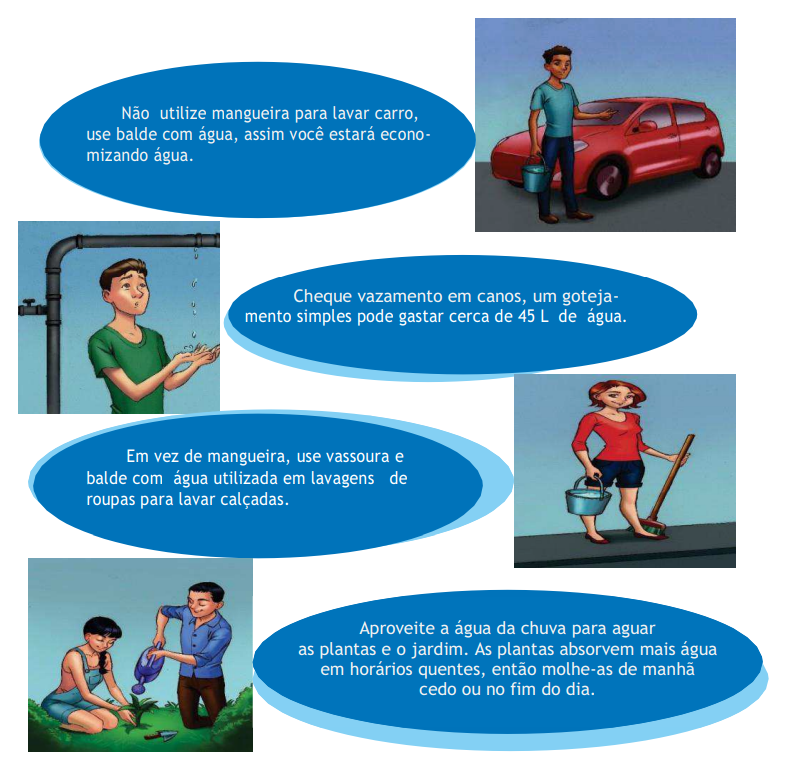 Dê uma volta no seu bairro e em uma folha de papel, anote o que você pode observar sobre como o meio ambiente é tratado no seu bairro e na sua casa. Veja se há lixo jogado em lugar errado, se há vazamento de água na sua rua ou na sua casa, se seus vizinhos, familiares e amigos desperdiçam água.