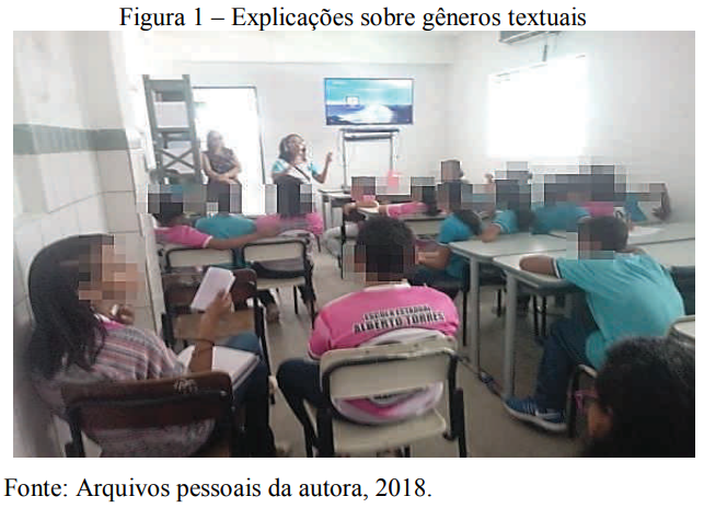 No primeiro momento da experiência deve-se apresentar o que é gênero textual, quais os tipos que existem, e como podem ser utilizados para o ensino de conteúdos relacionados às problemáticas socioambientais, conforme (figura 1).