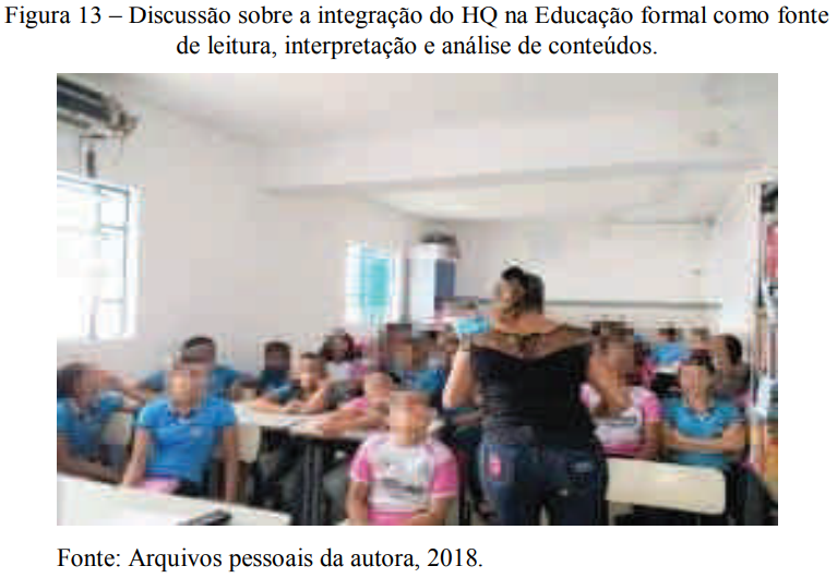No primeiro momento da atividade na sala de leitura, (figura 13), discutir a integração do HQs na educação formal tanto para a leitura quanto interpretação e análise de conteúdos pelo alunado. Logo depois apresentar as vantagens, desvantagens e limitações de seu uso.