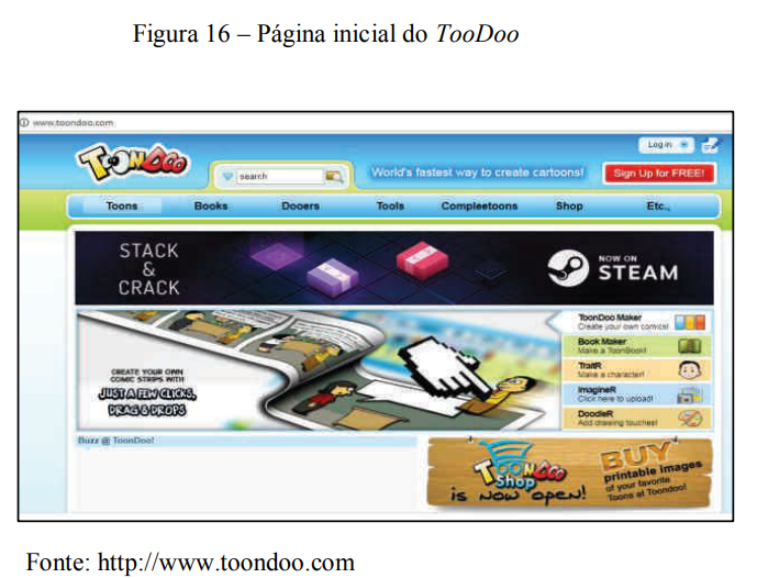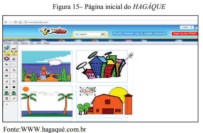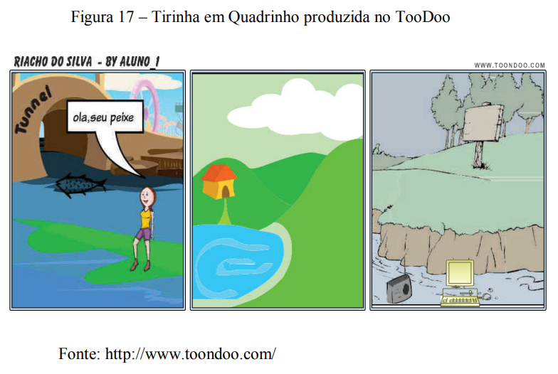 Logo em seguida, solicitar que cada grupo acesso a internet, (figuras 15,16 e 17) para explorar os dois ambientais virtuais mais completos na criação de HQs, que permitem criar personagens, desenvolver cenários, elaboração de diálogos para suas tirinhas e a formação do HQ do grupo.